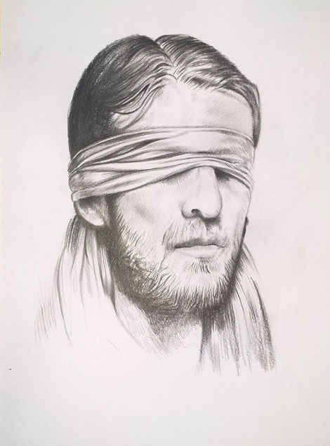 Szabad kézzel felvázolom a portrét, amiből kialakítom a legjobb kompozíciót. Ezt követően részletezem a festményt, grafikát.